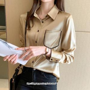 シャツ ブラウス 秋 秋服 レディース 無地 長袖 ゆったり シンプル トップス ビジネス 通勤 お仕事 優雅 オフィス OL 可愛い 着痩せ お出かけ オシャレ