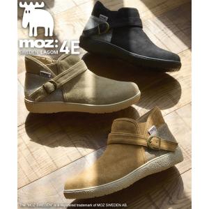 ブーツ 靴 4E 幅広 ゆったり ワイド 大きいサイズ moz モズ 軽量 ベルト付 サイドゴア ショートブーツ ラウンド 脱ぎ履きラク エルク へらじか (アクアカルダ)