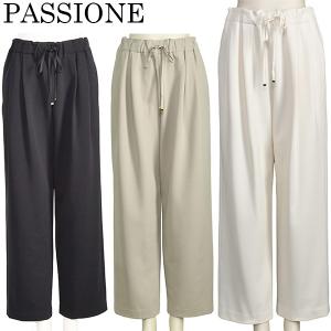 パシオーネ 裏起毛 ワイド パンツ レディース ゆったり ホワイト 白 ベージュ ブラック 黒 40代 50代