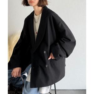 ジャケット テーラードジャケット ゆったりサイズなのに、きちんと見えも叶える心地よさ。オーバーサイズ袖タックダブルボタンテーラードジャケット(長袖)