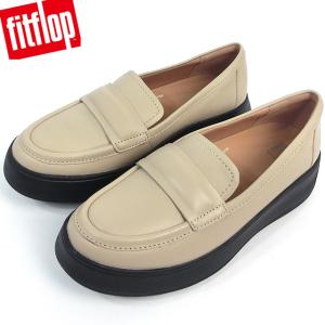 フィットフロップ レディース ローファー フラットシューズ 靴 FITFLOP F-MODE PADDED-DETAIL LEATHER FLATFORM LOAFERS HG3-A95 ベージュ