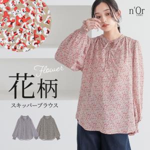 ブラウス レディース トップス 長袖 小花柄 シャツ スキッパー リボン 落ち感 パフスリーブ 総柄 プルオーバー 春 「メール便可」「10」