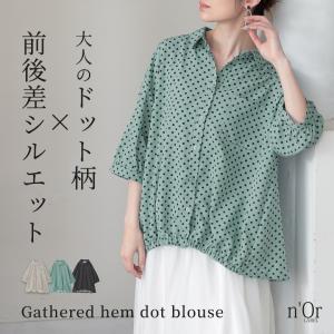 ブラウス レディース トップス 半袖 五分袖 シャツ 襟付き ドット柄 水玉 羽織 ギャザー 薄手 二の腕カバー お尻が隠れる 春 夏「メール便可」「10」