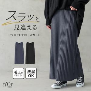 ナロースカート ロング レディース ボトムス リブニット セットアップ対応 ウエストゴム 裏地付き 毛玉ができにくい 体型カバー 秋 冬「メール便不可」「20」