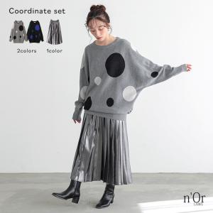 2点コーデセット 2025 レディース ニット 長袖 トップス セーター クルーネック スカート ロングスカート プリーツスカート「送料無料」「メール便不可」「50」