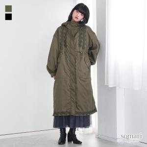 モッズコート ロング丈 レディース アウター コート 長袖 フード付き キルティング レース ぽわん袖 フレア 50代 秋 冬「送料無料」「メール便不可」「50」
