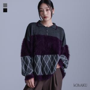 ニット 長袖 レディース トップス セーター ポロニット シャギーニット 無地 プルオーバー レイヤード 「メール便不可」「30」