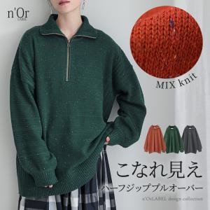 ニット 長袖 レディース トップス セーター スタンドネック ハーフジップ ネップヤーン ざっくりニット 秋 冬 「メール便不可」「30」
