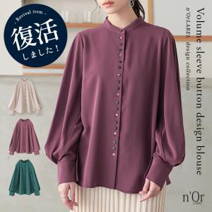 ブラウス レディース 長袖 トップス シャツ ボリューム袖 バンドカラー タック ロングカフス 秋 冬 春※メール便可※[10]