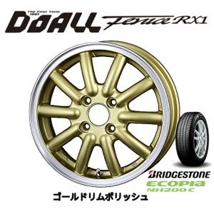 DOALL Fenice RX1 軽自動車 4.5J-14 +45 4H100 ゴールド/リムポリッシュ & ブリヂストン ECOPIA NH200C 165/55R14