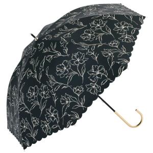 ビコーズ PUラインフラワー ブラック 黒 クロ系 花柄 傘 レディース 長傘 雨傘 日傘 UVカット 遮光 晴雨兼用 大きい 丈夫 手開きタイプ