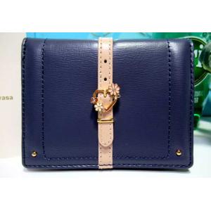 送料無料 サマンサタバサ 本牛革 ハート フロント ベルト 二つ折り財布 折財布 ミニ財布 ネイビー 紺 新品 証明書付 ギフト包装無料 開運 金運up 春財布