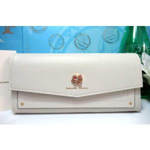 送料無料 サマンサタバサ キラキラ ビジュー付 ロゴ入 本牛革 かぶせ 長財布 オフホワイト 白 新品 証明書付 ギフト包装無料 開運 金運up 春財布