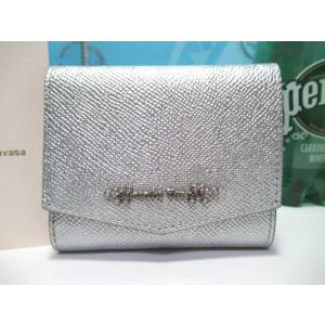 送料無料 サマンサタバサ 限定 キラキラ ビジュー付 ロゴ入り 本牛革 三つ折り財布 折財布 ミニ財布 銀 新品 タグ 付 ギフト包装無料 開運 金運up クリスマス