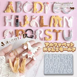 シリコン型・モールド アルファベットにゃんこ シリコンモールド レジン型 セット 文字 英字 猫 ねこ ネコ イニシャル 大文字 キーホルダー 通し穴付き UVレジン