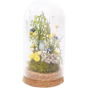 コルクガラスドーム 小花アレンジ プリザーブドフラワー ドライフラワー (ブルー, Medium)