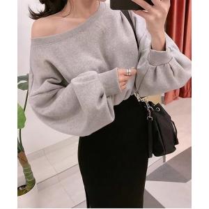 トレーナー スウェット バックジップボリュームオフショルスウェット レディース