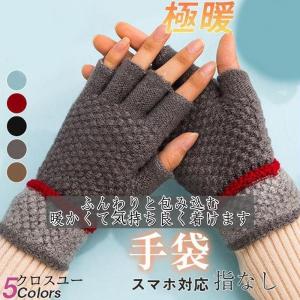 手袋 レディース グローブ デスクワーク スマホ対応 手ぶくろ ハンドウォーマー 指穴 自転車 指なし 通勤 通学 バイク ニット 指切り 防寒