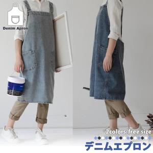 デニム エプロン シンプル デニム生地 デニムエプロン 美容師 作業用 前掛け 首掛け ロング丈 無地 業務用 家庭用 DIY ガーデニング 保育士 園芸 NP-006 区分C
