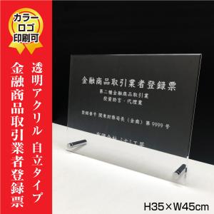 金融商品取引業者登録票 透明アクリル 自立タイプ H35×W45cm標識 登録標識 営業所 事務所 許可書 自立ビス付き おしゃれ finance-acryl01-jiritu
