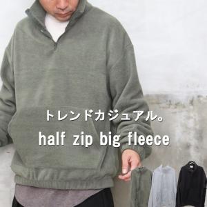 バーゲン ハーフジップビッグフリースプルオーバー ハーフジップ メンズ ハーフジップフリース フリーストレーナー メンズ カーキ グレー ブラック 暖かい 服 秋
