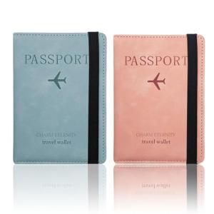 パスポートケース パスポートカバー レディース メンズ 女性 男性 男女兼用 二つ折り レザー調 スリーブ ゴムバンド付き スキミング防止 RFID