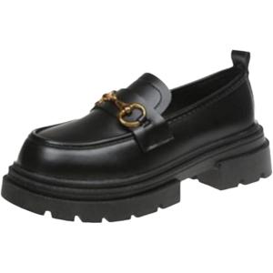 ビットローファー レディース 厚底 ソール スリッポン カジュアル ソフトクッション 235(ブラック, 23.5 cm)