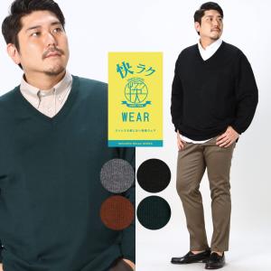セーター 大きいサイズ メンズ 快ラクWEAR 快楽 カイラク ウォッシャブル カシミヤ混 Vネック ニット 長袖 B&T CLUB