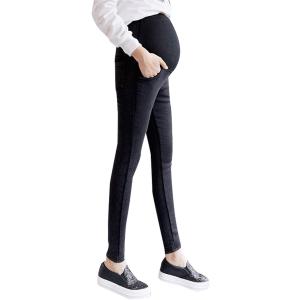 MATE マタニティ デニム ストレッチ スキニー カジュアル マタニティー 妊婦 デニムパンツ(ブラック, M)