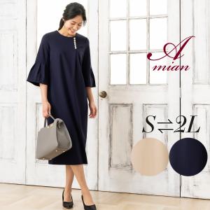 ワンピース レディース きれいめ 40代 50代 秋冬 ロング 六分袖 秋服 ストレッチ フォーマル セレモニー