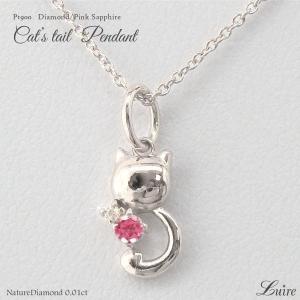 ネックレス レディース ピンクサファイア ネコ ペンダント 猫 キャット プラチナ900 誕生日 プレゼント ギフト ブラックフライデー