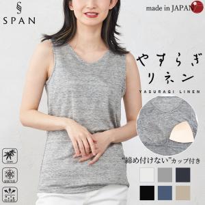 タンクトップ レディース インナー カップ付き ブラトップ ブラタンクトップ リネン 麻 日本製