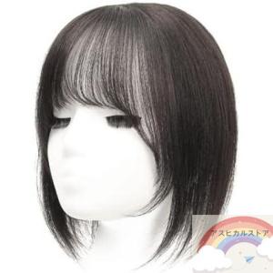 部分ウィッグ ヘアピース ポイントウィッグ 女性 レディース 人毛100% かつら(前髪カット(ナチュラルブラック), 6x4cm)