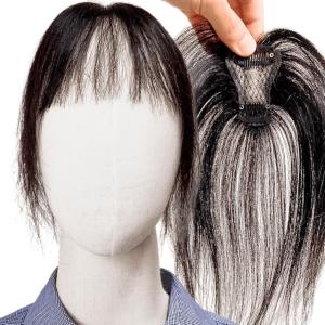 部分ウィッグ かつら ヘアピース ポイントウィッグ 白髪(白8黒2(人毛100%), グレイヘアーショート(前髪未カット&ベース大)