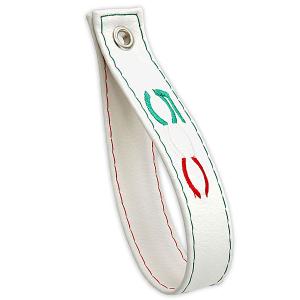 フィアット 500 リアゲート用レザーストラップ(ホワイト/500 ロゴトリコロール) 18150