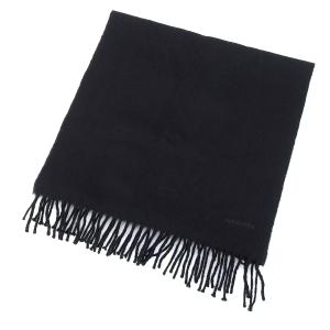 美品▲HERMES エルメス カシミヤ100% ロゴ刺繍 フリンジ付き ストール マフラー ブラック スコットランド製 メンズ