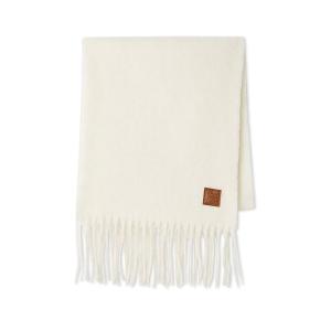 マフラー ウール チェック柄 無地 フリンジ 両面起毛 カジュアル 冬 白 ストール ショール レディース Honeys ハニーズ ウールマフラー
