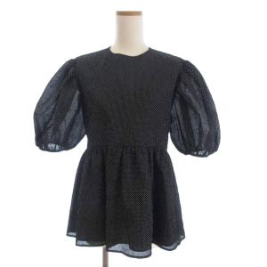 ミラオーウェン 美品 25SS ボリューム袖 カットソー ブラウス 半袖 フレア 09WFT252224 ドット 黒 ブラック 1 レディース