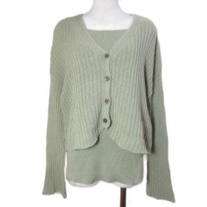ミラオーウェン Mila Owen 美品 キャミ付リブカーディガンアンサンブル 09WNT211364 ニット カーディガン 長袖 Vネック 0 S相当 オリーブ /
