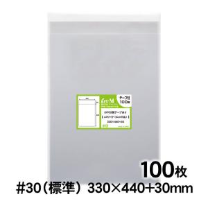OPP袋 A3ワイド 2cm巾広 テープ付 100枚 30ミクロン厚(標準) 330×440+30mm 透明袋 国産 二つ折り発送
