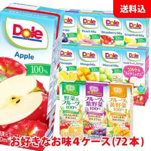 送料無料 Doleドール 果汁100%ジュース200ml / 農協野菜days200ml ケース単位で選べる4ケース(72本) 紙パック ジュース アソート 雪印メグミルク