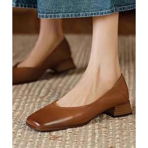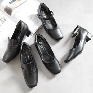 パンプス スクエアトゥチャンキーローヒールパンプス
