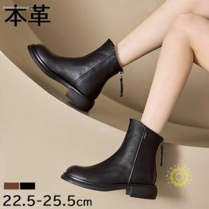 本革 ショートブーツ レディース ウエスタンブーツ ローヒール 3.5cm ファスナー ショートブーツ 美脚 チェルシーブーツ シューズ 厚底 秋 冬 柔らか 低反発 軽