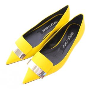 セルジオロッシ Sergio rossi SR1 フラットパンプス ポインテッドトゥ ローヒール レザー ロゴプレート 37 黄色 イエロー A78960