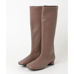 ロングブーツ レディース スクエアトゥ プレートヒール 痛くない 歩きやすい スムース アミアミ