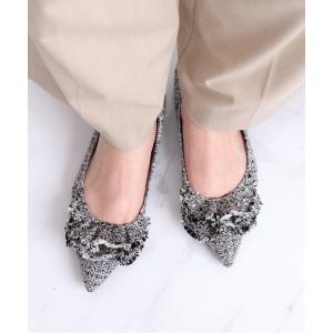 パンプス ラウンドオペラビジュー フラット10↑