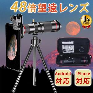 48倍望遠レンズキット光学レンズ クリップ式 スマホ 望遠レンズ 遠距離撮影 ミニ三脚スタンド&収納ポーチ付き ピント調整 Android iPhone 望遠レンズ 簡単