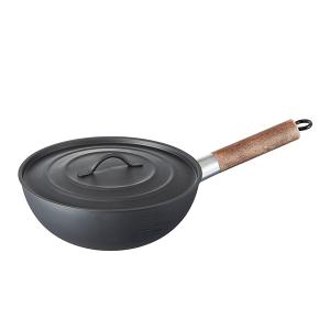 中華鍋 フライパン 24cm/28cm 北京鍋 中華料理 鉄手作り鉄鍋 鉄製中華鍋 IH・ガス火対応 天然木取っ手 ガラス透明蓋 木製蓋 ガス代節約 錆びない 木柄 焼く