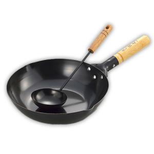 中華鍋 鉄 北京鍋 IH対応 鉄フライパン お玉付き中華鍋セット 28cm 陳建一 チャーハン 炒め鍋