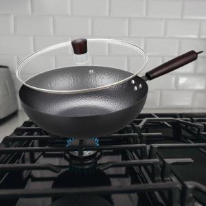 テフロン加工の中華鍋 32 cm ユニバーサル電磁調理器ガス中華なべパン ハニカム蓋付き